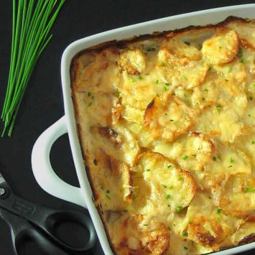 Whatever you prefer to call them, they are a delicious treat. Layer upon layer of tender potato slices, slowly simmered in a garlicky cream and ricotta sauce, then covered in bubbling, golden brown, melty Gruyère cheese – what’s not to love?