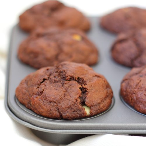 I figured it was about time I introduced you to these triple stuffed, dark chocolate muffins. These babies are what I reach for when I’m having one of those “I need chocolate, and I need it now” moments.
